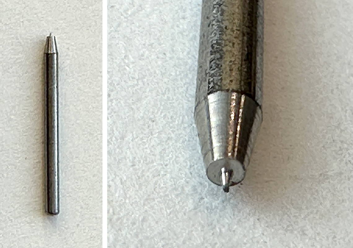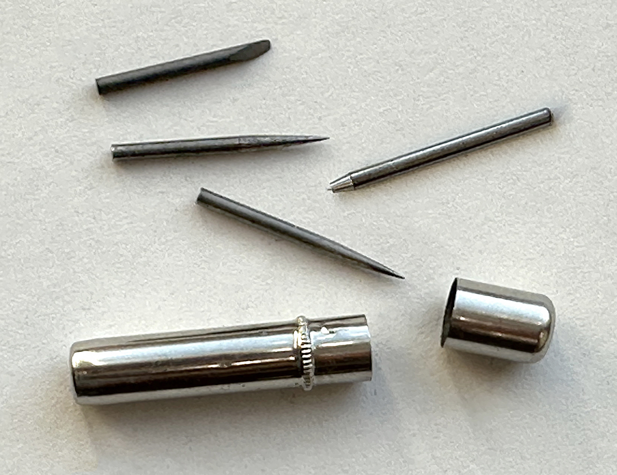 Replaces graphite, and is used in conjunction with the P-59 Extension Shoulder Needle. Seen in blue velvet-lined case. Here is what it looks like in use.