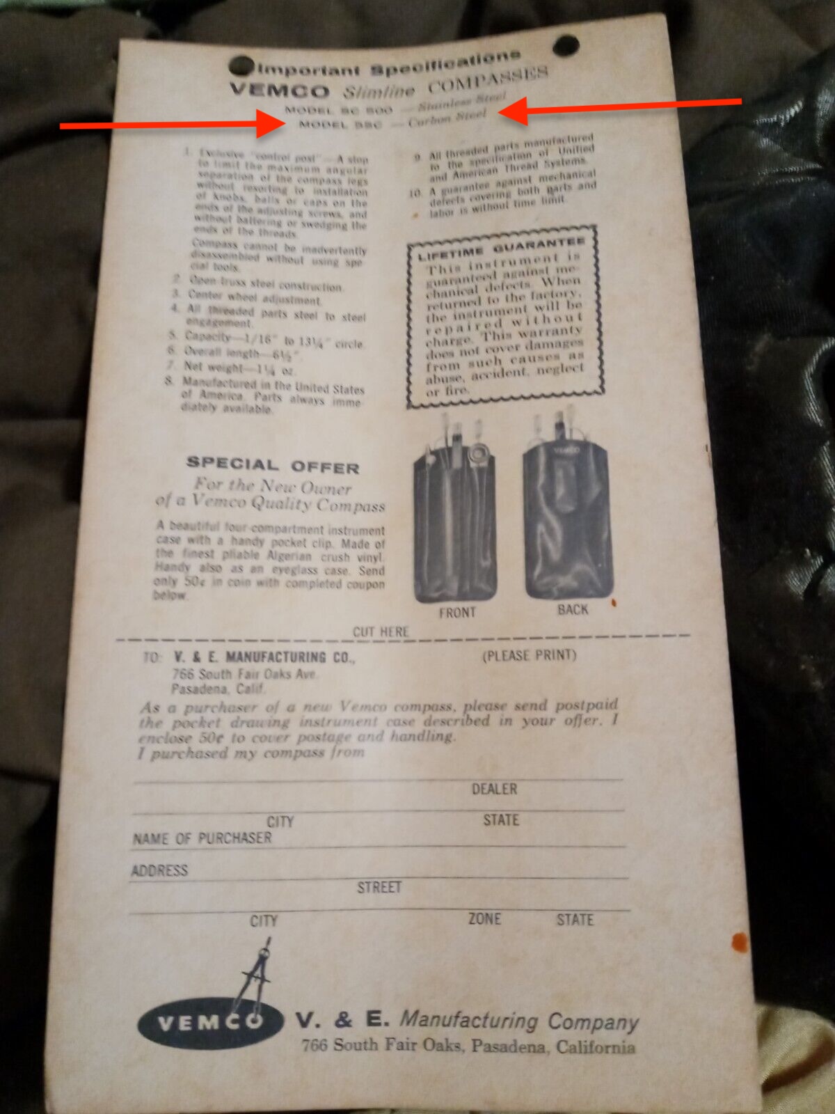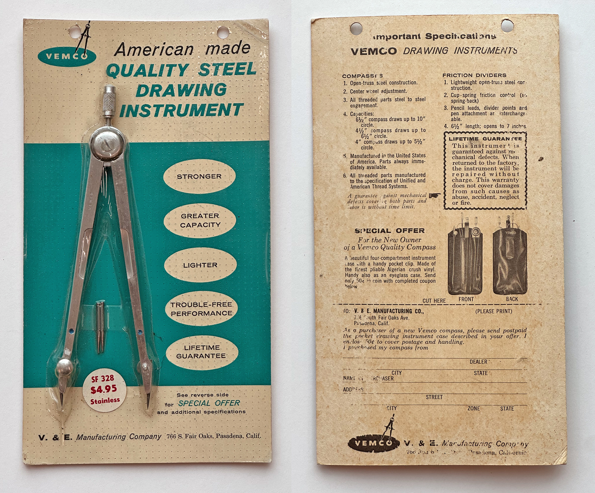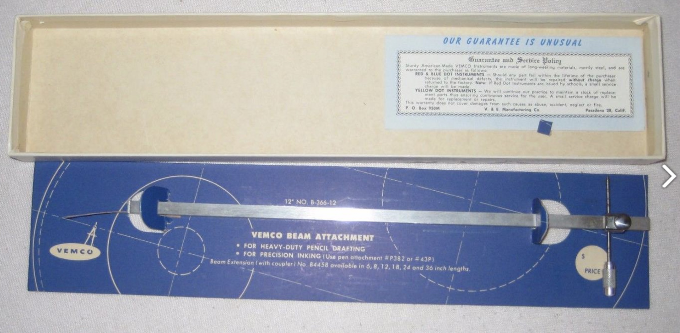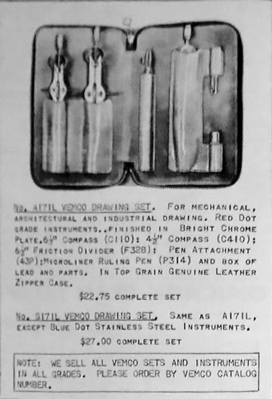 The quotes above are from the VEMCO DRAWING INSTRUMENTS Catalog No. 10-A, 1956.