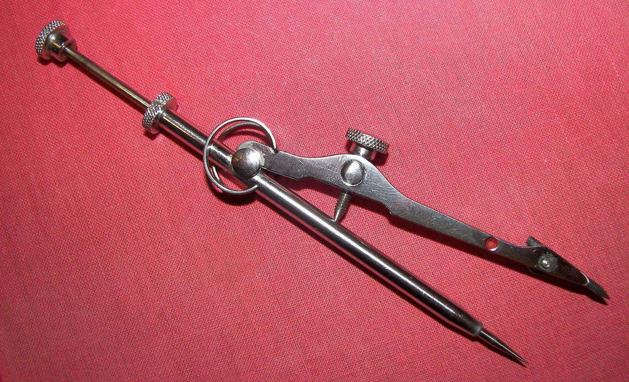 Has an adjustable point. Attaches to a bow compass. Packaged in a cardboard box. Can use the P382, 43P, or S43P pen attachments for inking, and any of the B-4458 Beam Extensions (with Coupler).