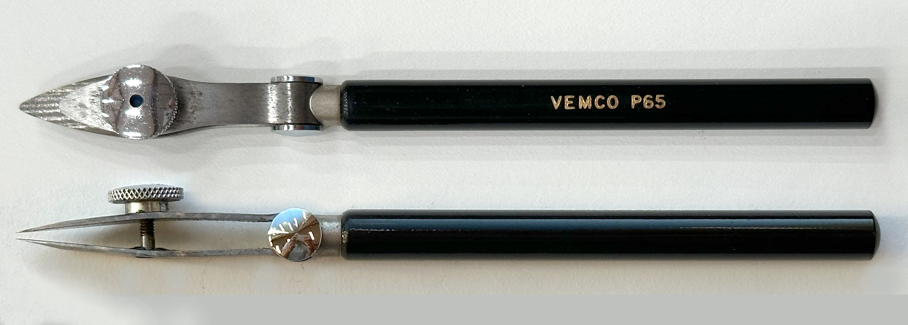 Though the finish levels and material qualities of each grade varied, when new, all grades functioned equally well. Because Vemco products are now only available as vintage, grade makes a difference, and more so over time. Both Yellow Dot and Red Dot instruments may now have rust, while Blue Dot instruments do not. Later Blue Dot instruments have a bead-blasted finish rather than brushed.