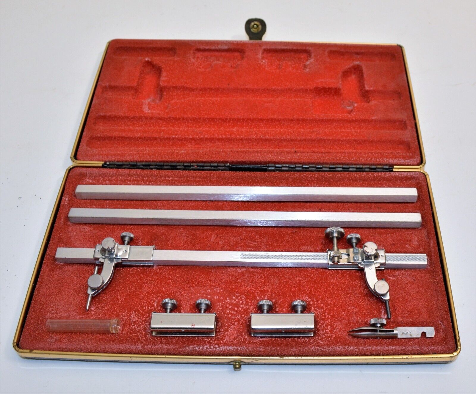 Beam Compasses: all beams are hard-rolled structural aluminum alloy; sliders, legs, and couplers are chrome plated cold-rolled steel; and all clamp screws are stainless steel.