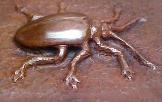 You may cold forge or cold-work the metal to raise or emboss the surface. Repoussé is a method of decorating sheet metal in which designs are hammered into the back of the metal. Special punches are used to create the designs, which form in relief (raised designs) on the surface of the metal. It is possible to make your own simple tools, such as a piece of wire bent into a particular shape to create a raised line when placed beneath a sheet of metal and hammered from the top.