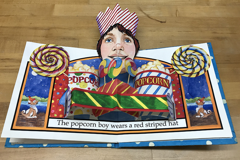 Once your storyline and storyboard are approved, you will begin work on the actual unbound spreads. This entails making original artwork, seamlessly integrated into functional mechanics. If you wish to include text, it too must become an aesthetic element in your composition. Though each spread is an individual work of art and design, the overall book must form a cohesive whole. Your book is complete when bound to professional standards, as demonstrated.