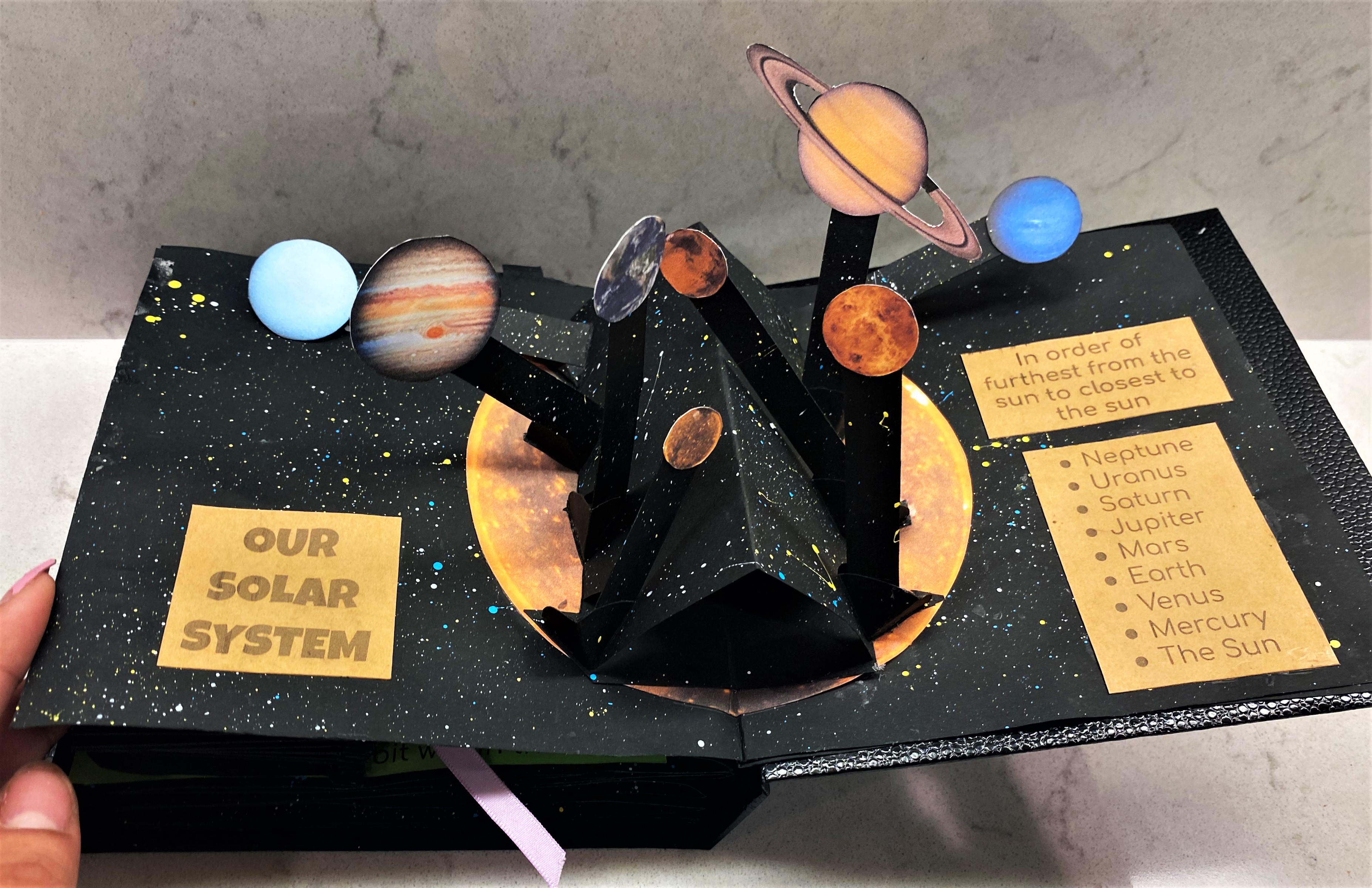 For the sun, Mercury, and Venus It would be nice to continue the full circle of their images down onto the page on which the pop-up mechanisms sit, rather than having them cut off abruptly when they hit the page. And on the next page, the clear plastic used for the wheel showing the moon's orbit would be less distracting and equally functional without all of the serrations around the edge.
