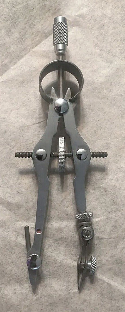 Has an adjustable point. Attaches to a bow compass. Packaged in a cardboard box. Can use the P382, 43P, or S43P pen attachments for inking, and any of the B-4458 Beam Extensions (with Coupler).