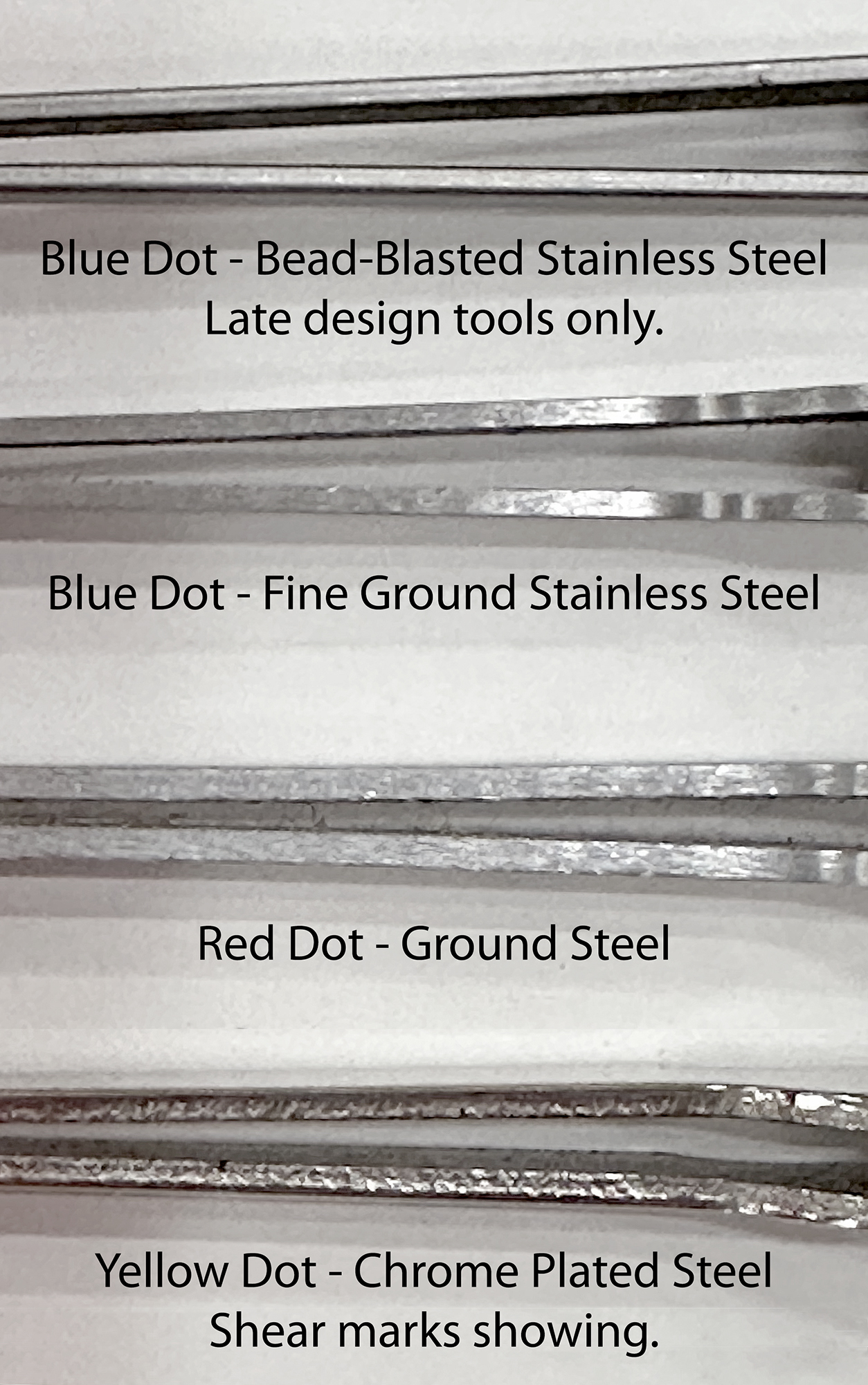 π΄ βRed Dotβ β Professional Model, chrome-plated or brushed steel. Edges ground to remove shear marks. Free repairs unless damaged by neglect or abuse (there was a small fee for repair of tools issued by schools).