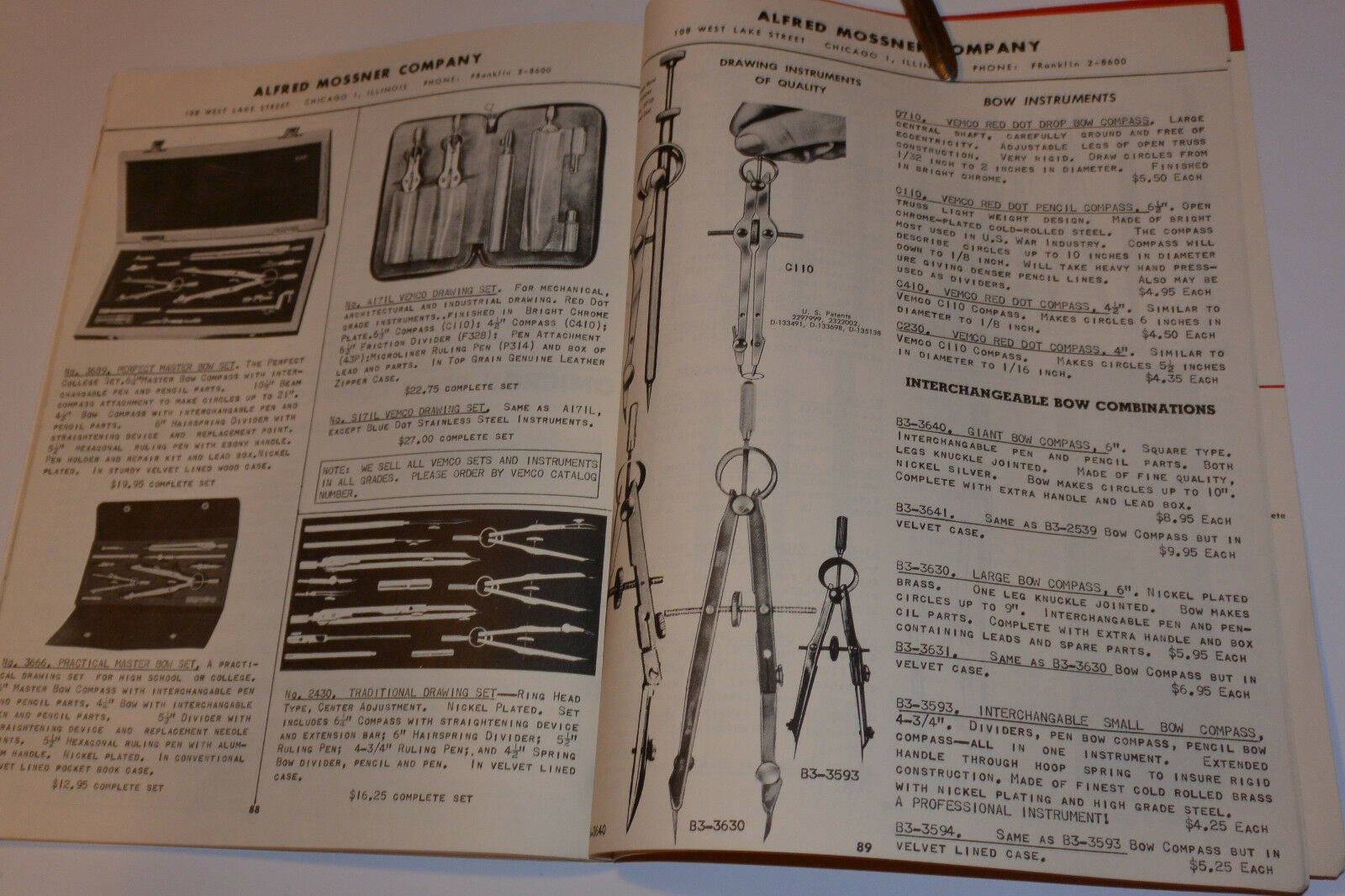 List of VEMCO Compasses, Dividers, and Pens