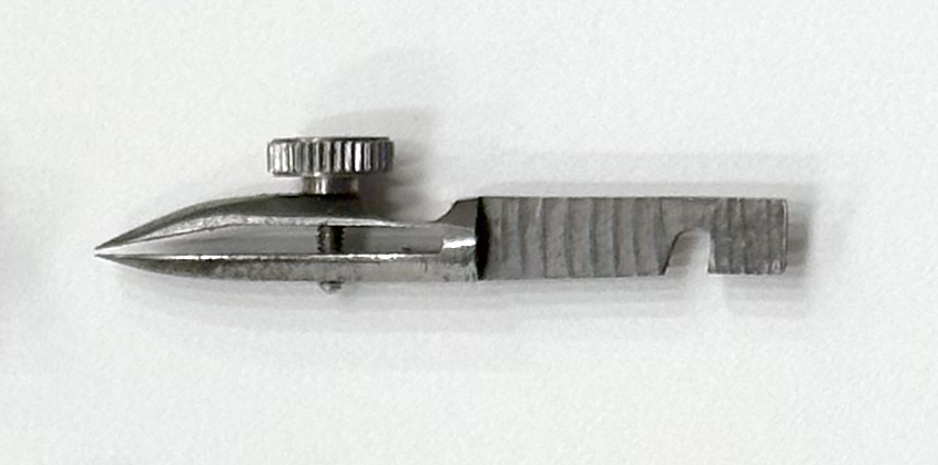 For use with pen attachments on compasses. Has a small, stepped-in point to limit paper penetration.