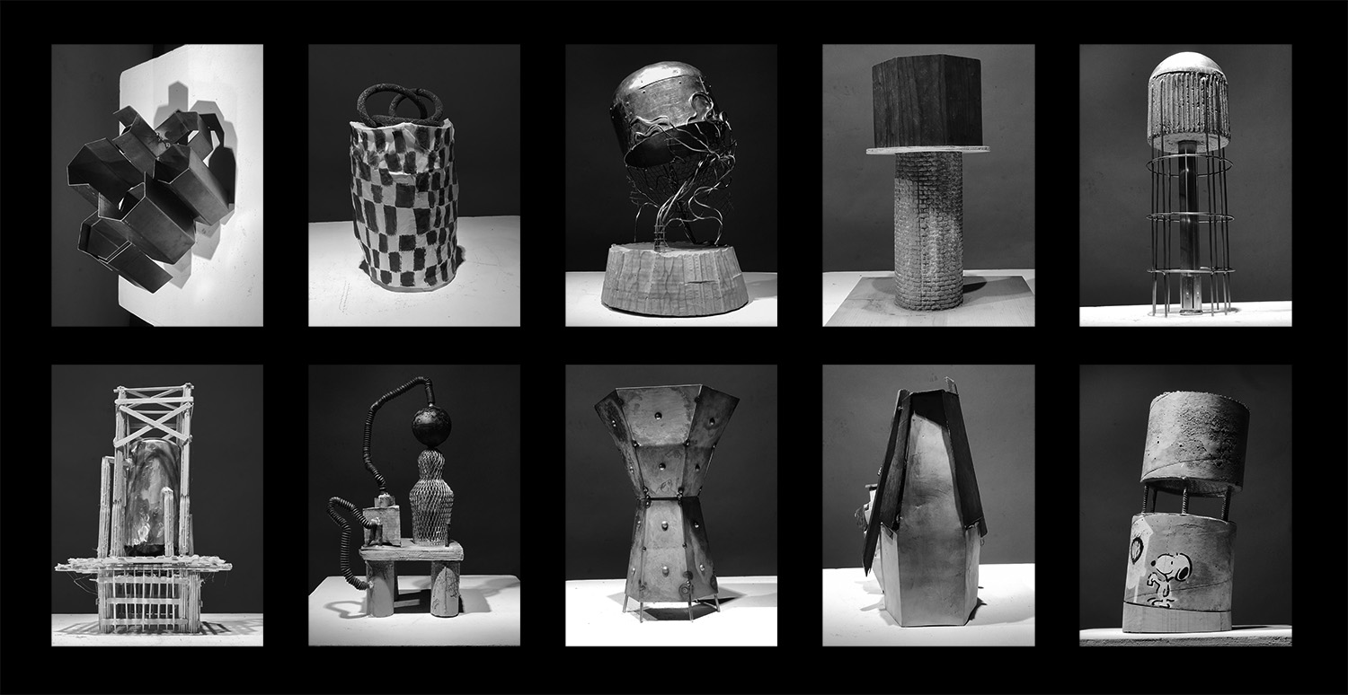 How does observing the work in black and white alter your perception? Removing color information limits our knowledge of the original source. For one, it ties the work tougher in a different way by limiting the pallet. Unlike the Becker collections, this group of objects only tangentially relate. They generally describe towers or vessels of some sort, but unlike the common language found in the Becker collections, there are not enough source images to find commonality among the individual sculptures. Perhaps after producing this project over 20 years, there may be enough work to start classifying pieces in refined ways.