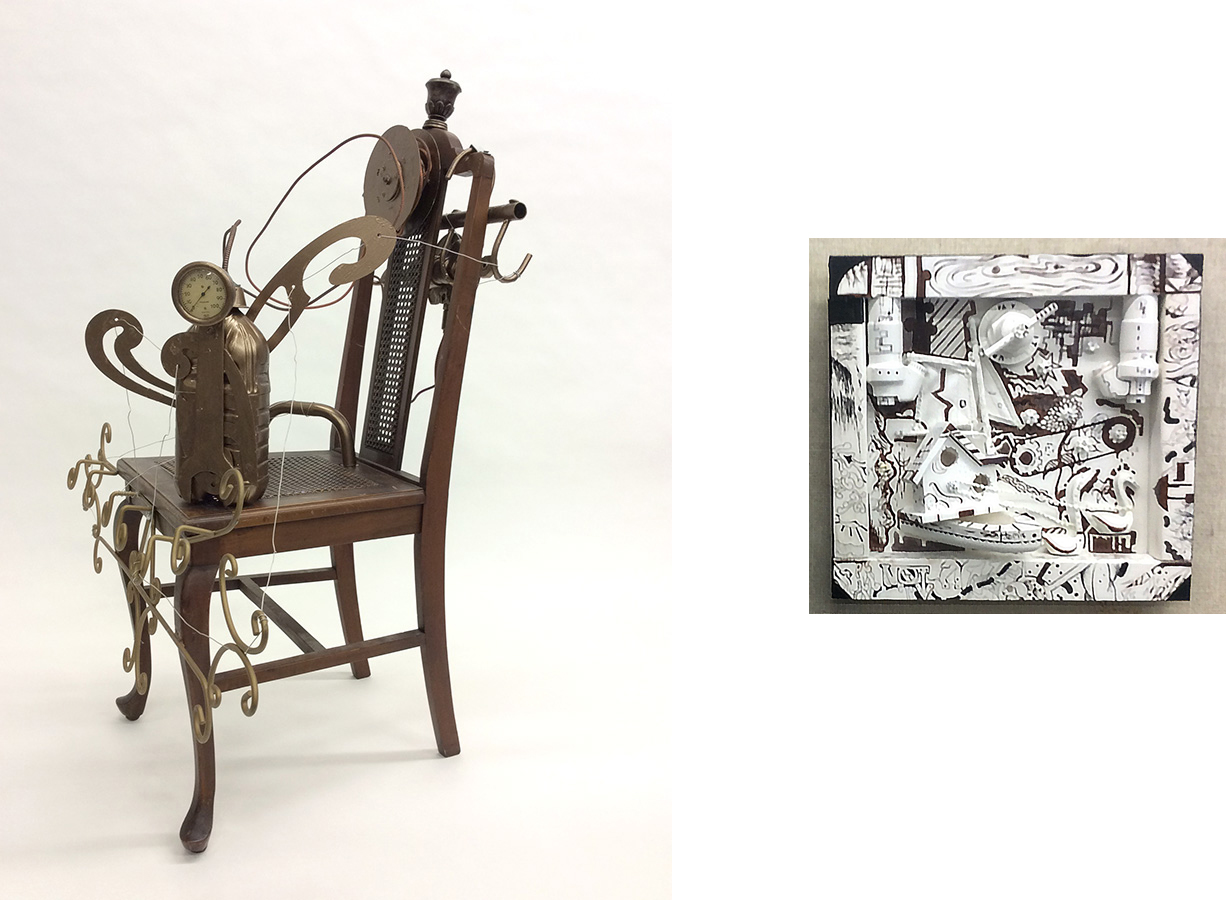 The Narrative Assemblage Project teaches you methods of working with found objects and to think about the story that goes along with the work. You will be expected to gather materials for yourself to use. The goal will be for you to produce work that integrates disparate materials in a formally strong and structurally sound manner. As with all assignments, these works must be presented in critique, and defended technically and aesthetically. Tools and machines will be introduced as necessary.