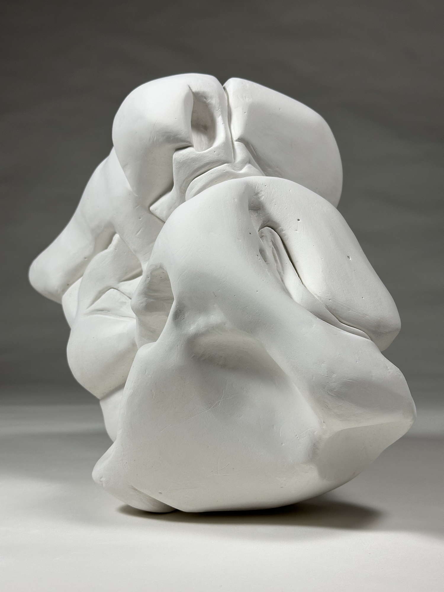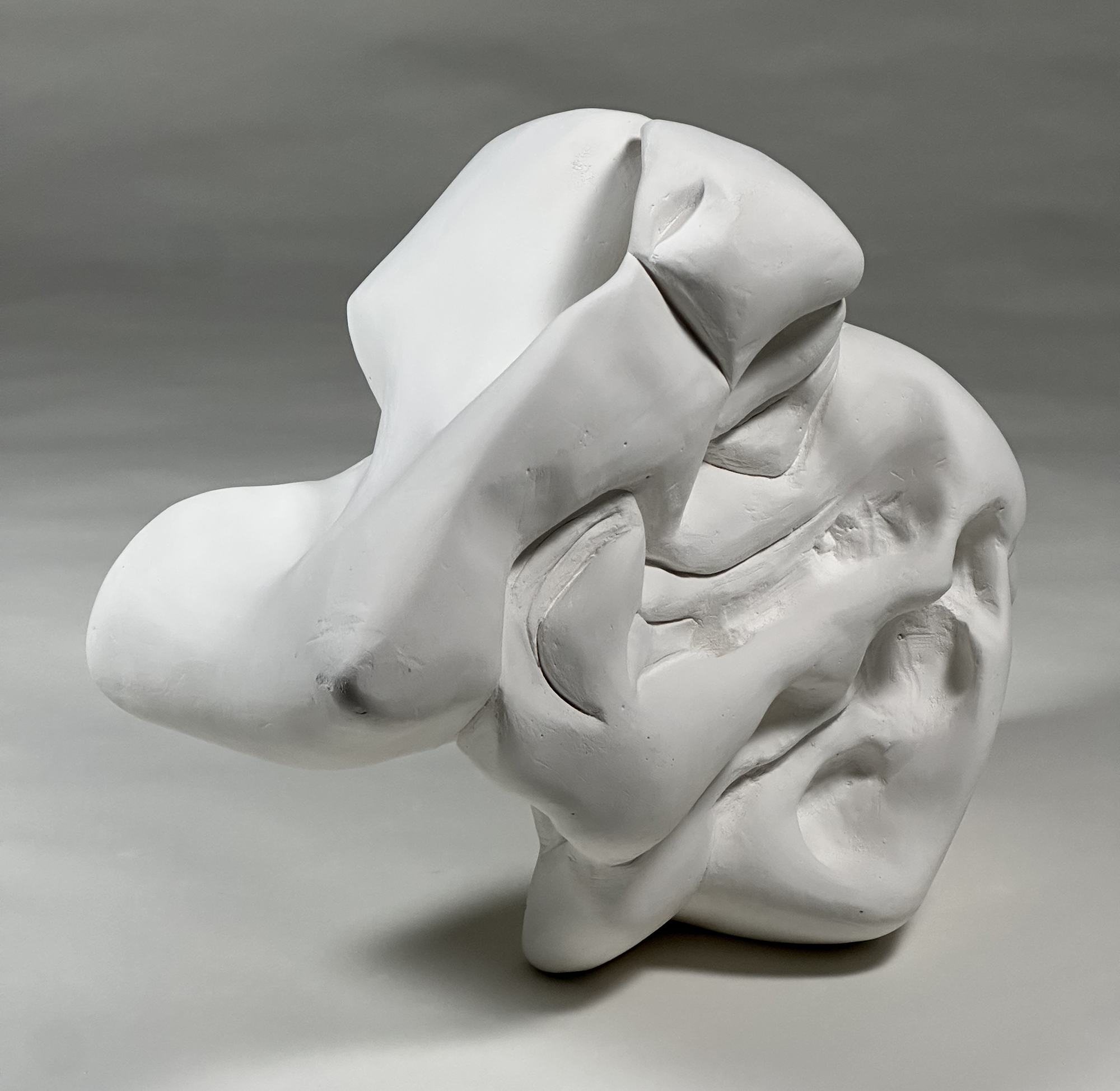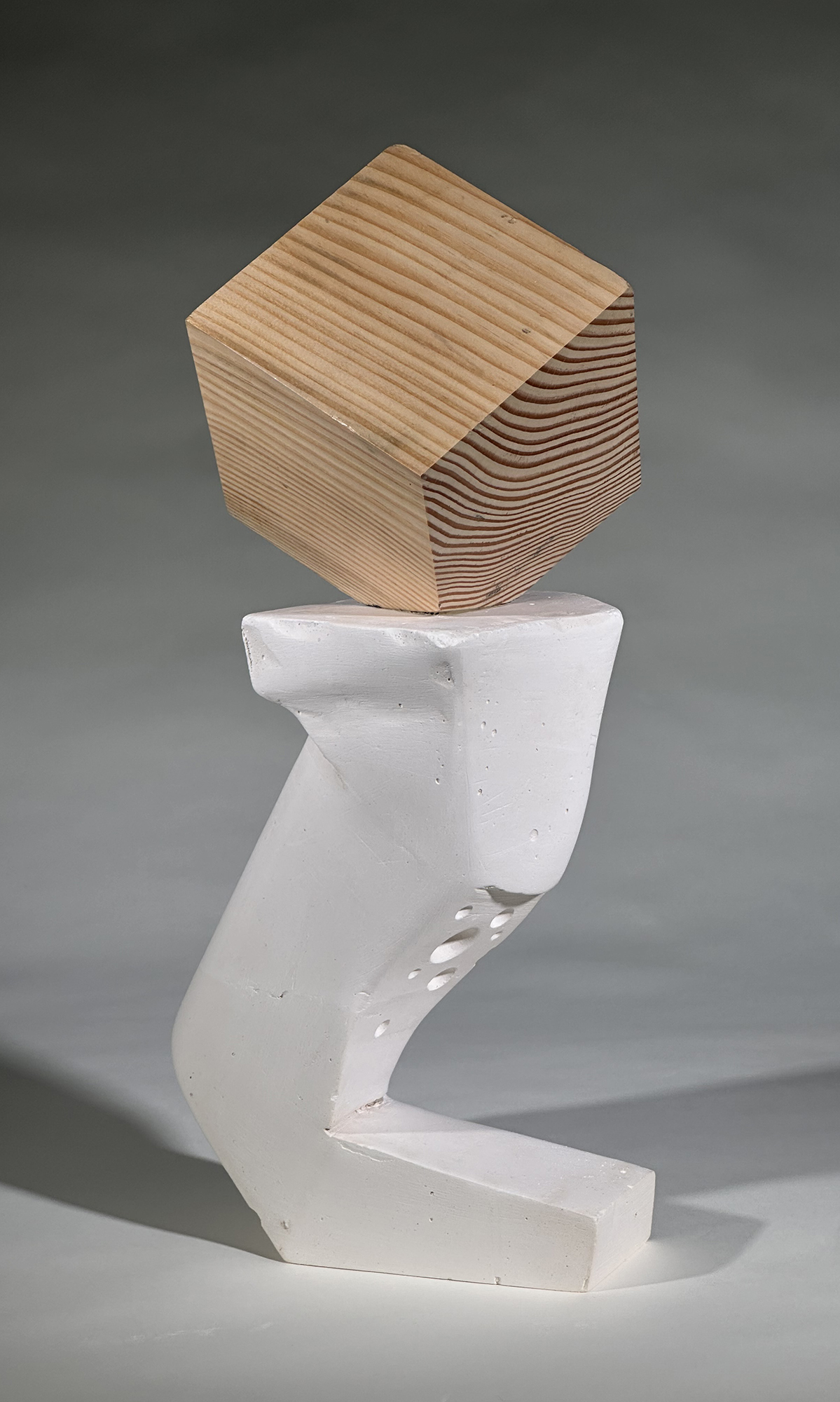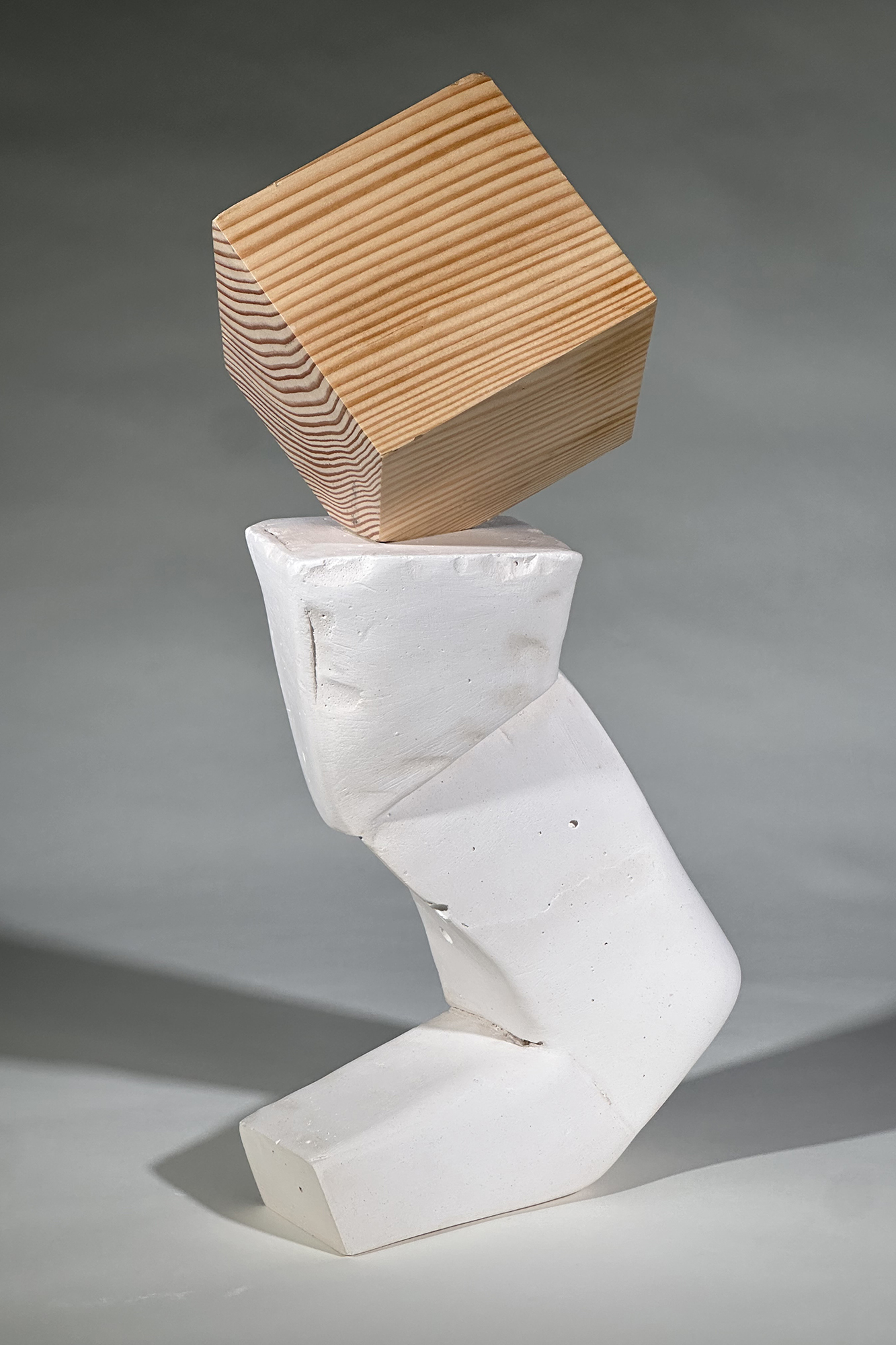 Rae Conners made a smooth abstracted figure seemingly made from many pieces barely assembled together, and delicately balanced on three points. Samantha Hammond combined a wooden block with her plaster for contrast in materiality, color, and shape.