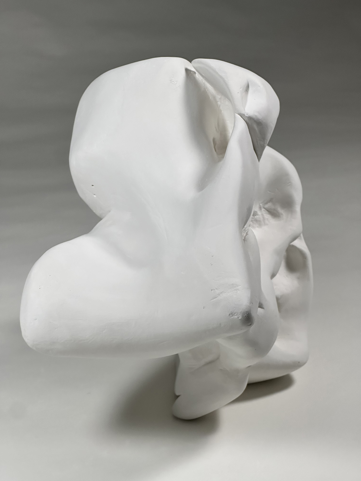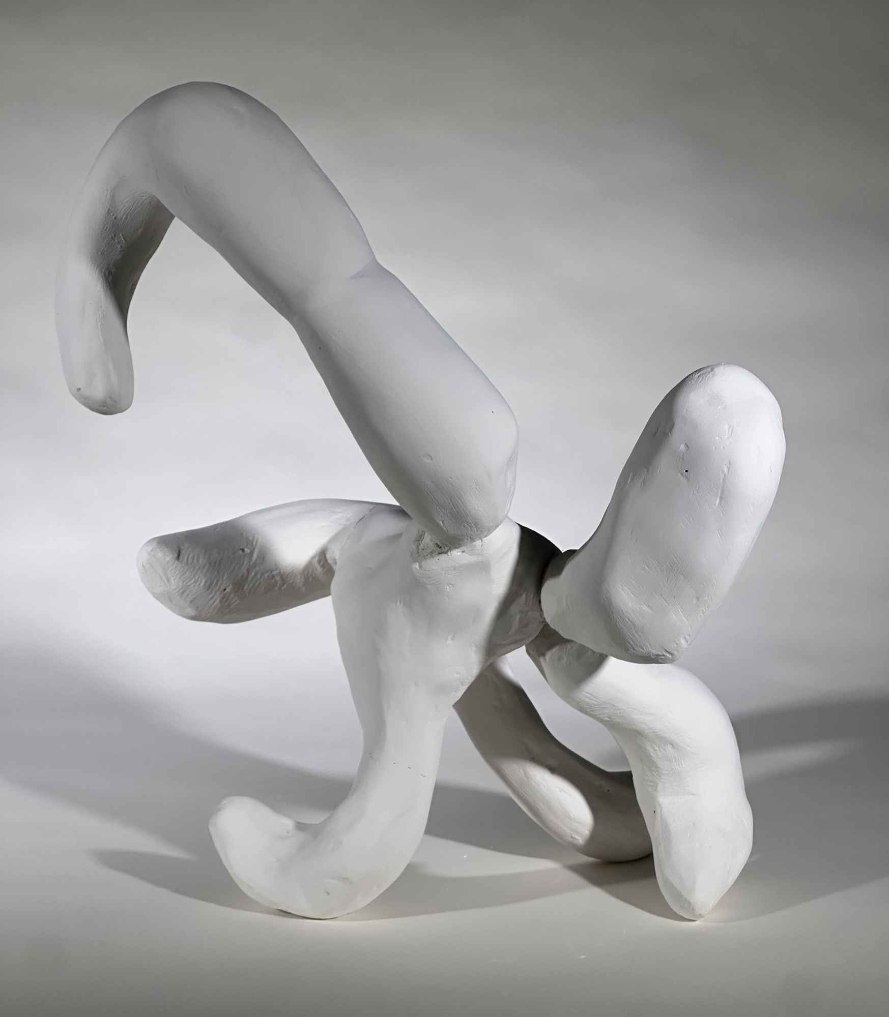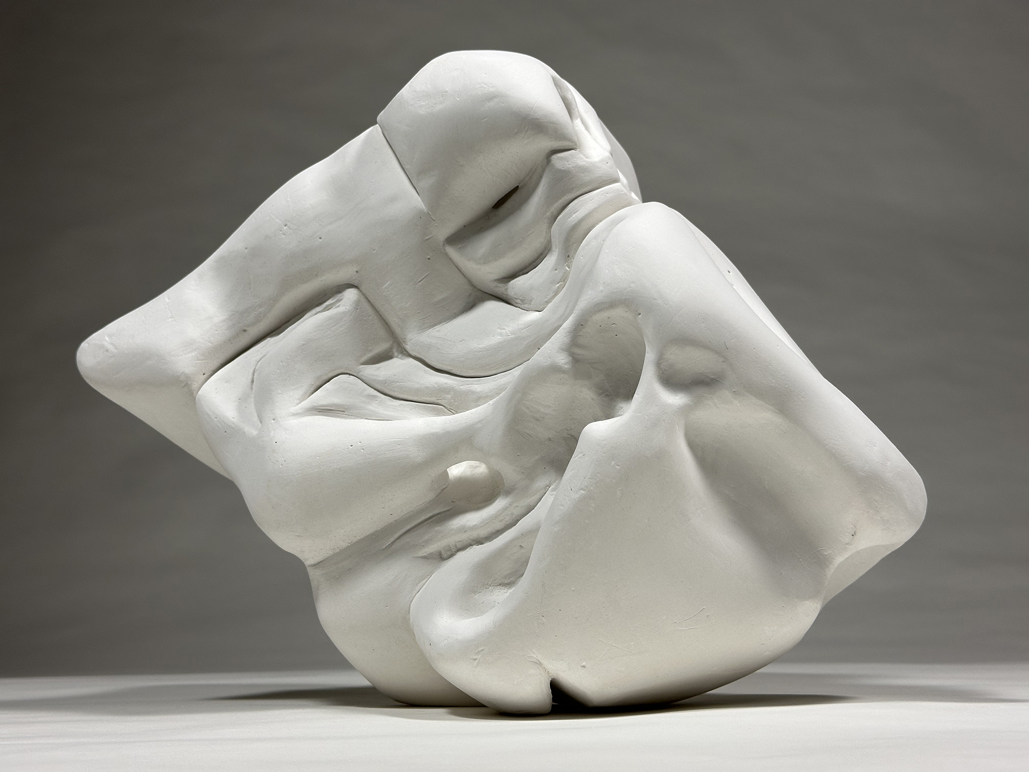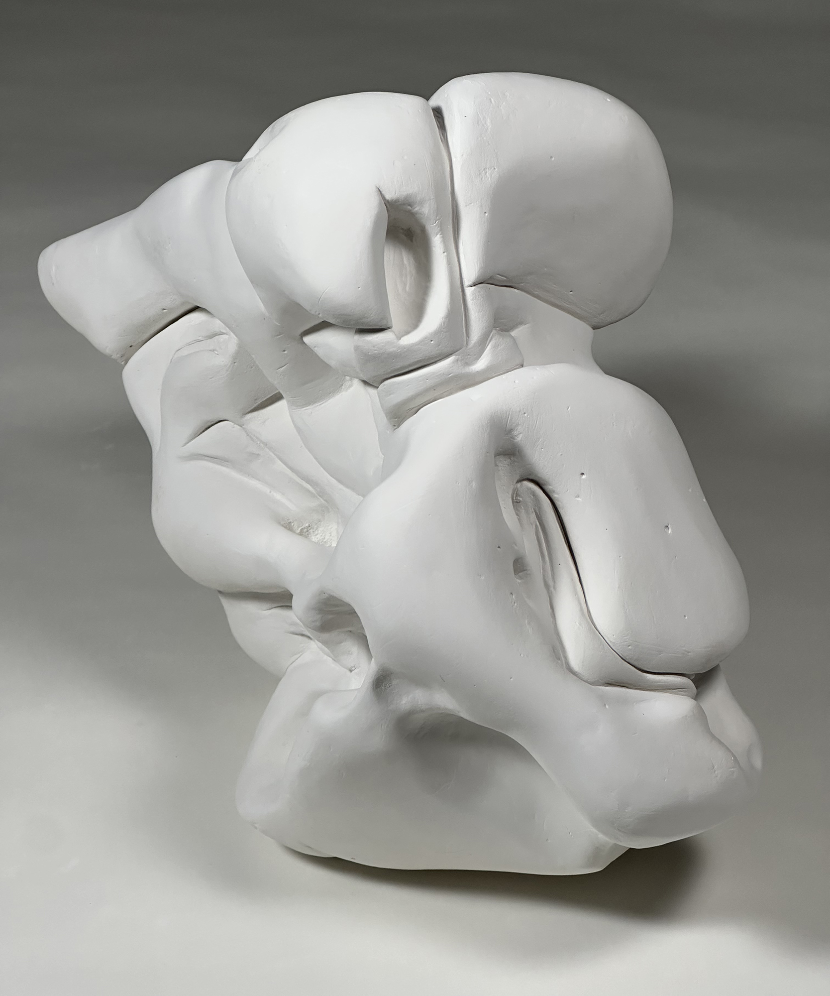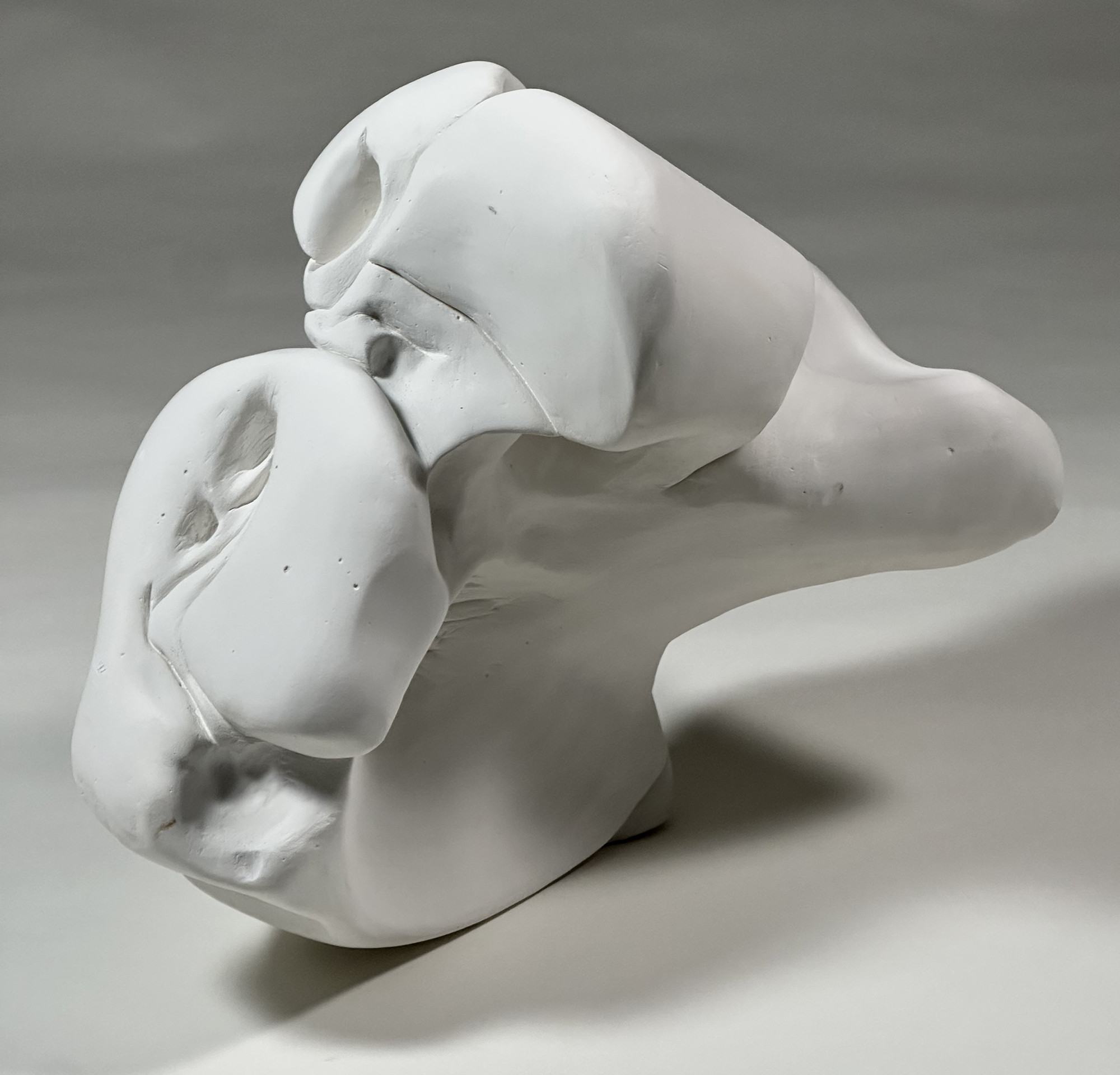 Rae Conners made a smooth abstracted figure seemingly made from many pieces barely assembled together, and delicately balanced on three points. Samantha Hammond combined a wooden block with her plaster for contrast in materiality, color, and shape.